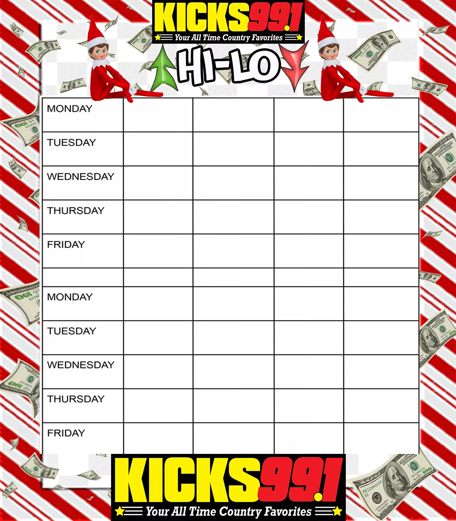 KEEP TRACK OF ALL OF THE GUESSES TO NARROW DOWN THE NUMBER TO WIN THE KICKS 99-1 HI LO JACKPOT!